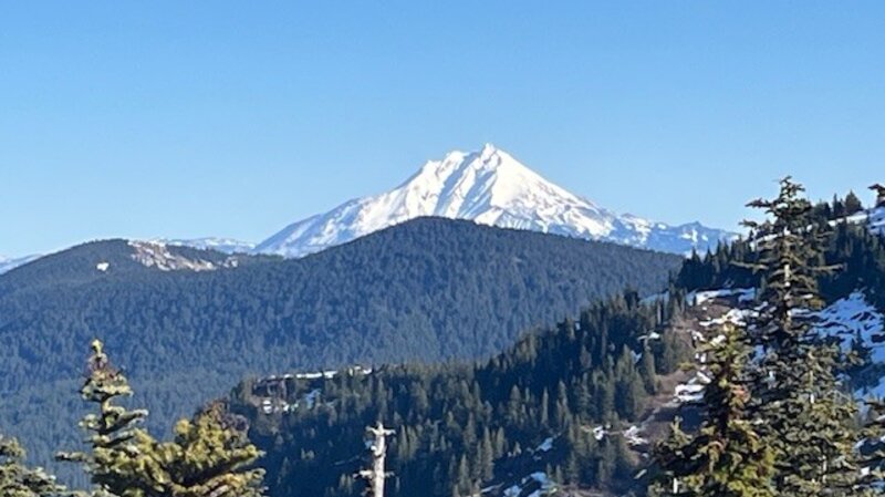 On January 24, 2026, the trailhead to Iron Mountain was snow free. Located on Highway 20 at Tombstone Pass, the hike to Iron Mountain is favored by many residents in Central Oregon and the Willamette Valley as a wonderful place to see wildflowers in the spring/summer. Over 300 species of wildflowers have been identified on Iron Mountain and the summertime traffic to see these can create crowded trails. However, in winter few hike the trail when snow makes it challenging. But in January 2026, with warm weather and limited snow, the trail had very few people and just a few icy snow patches, most near the top of the mountain. Microspikes and trekking poles made it easier to summit the mountain with much of the trail remaining free of snow. The entire hike up and back from the Browder Ridge parking area was just under 4 miles with just over 1400 feet of elevation gain. The long term weather forecast does not anticipate a lot of snow the rest of January, but perhaps in February there may be more precipitation.